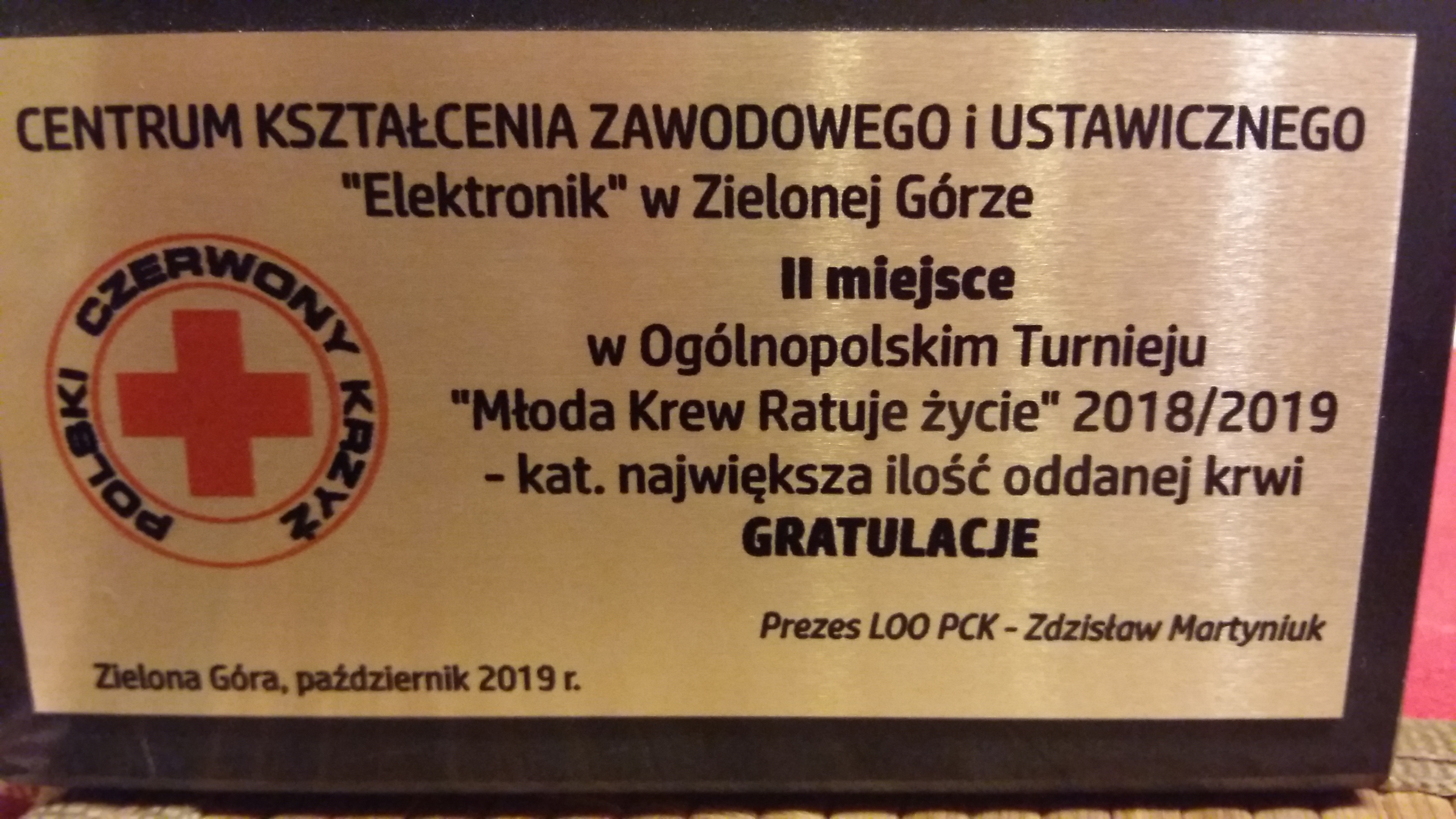 Podczas gali jubileuszowej 100 lecia Pck otrzymaliśmy puchar za II miejsce w Ogólnopolskim Turnieju "Młoda krew ratuje życie" 2018/19 dziękujemy wszystkim naszym szkolnym krwiodawcom.
