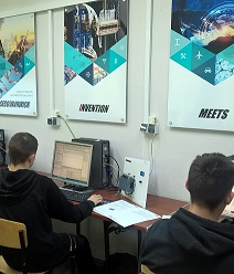 Uczniowie z klasy mechatronicznej wraz z pracownikiem firmy tworzyli projekty programując m.in. moduły analogowe PLC.