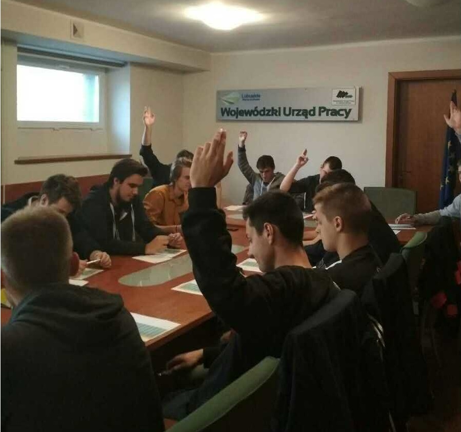 17.X, podczas dwugodzinnych warsztatów w sali poradnictwa zawodowego Wojewódzkiego Urzędu Pracy, uczniowie