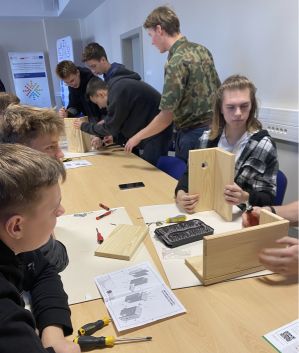 Podczas zajęć młodzież samodzielnie budowała budki dla ptaków, owadów, nietoperzy.