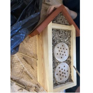 Dzięki wspólnej pracy szkolne otoczenie zyskało nowe budki dla nietoperzy i schronienia dla jeży, które zostały rozmieszczone na terenie szkoły.