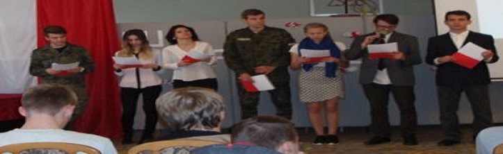 Z okazji Narodowego Święta Niepodległości kl. 2Th z wychowawczynią w ramach patronatu przygotowała uroczysty apel „Ku Niepodległej” dla delegacji wybranych klas.
