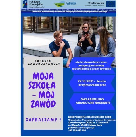 Zapraszam do udziału w konkursie pn. "Moja szkoła-mój zawód" w ramach projektu "Modernizacja kształcenia zawodowego w mieście Zielona Góra".