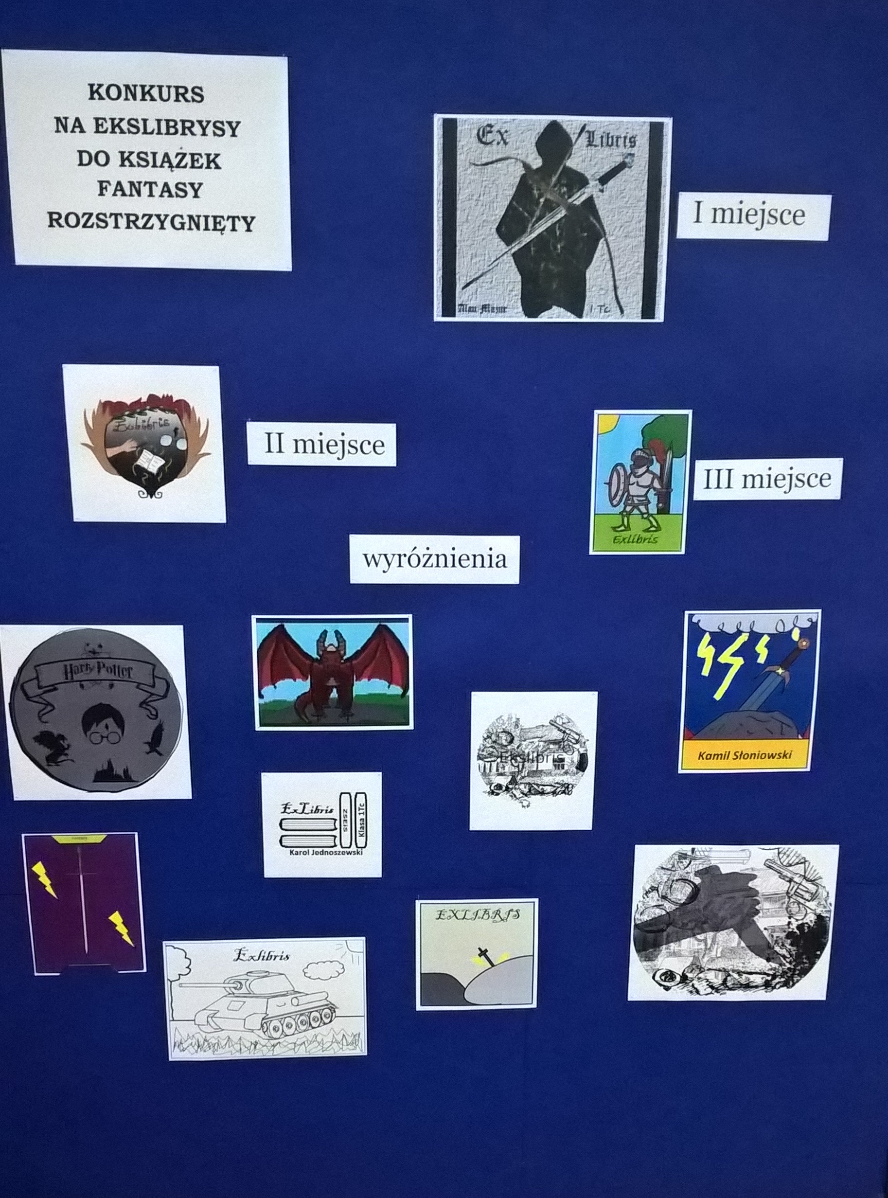 Wystawa nadesłanych - fantastycznych ekslibrysów znajduje się na korytarzu szkolnym.